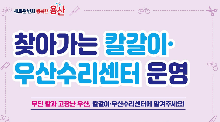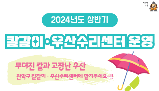 우산 무료수리센터는 고장난 우산 수리는 물론 무딘 칼이나 가위도 수리하는 점을 참고하여, 물량이 많은 경우 조기 접수가 마감되니 일정을 확인하여 방문하는 것이 좋습니다.