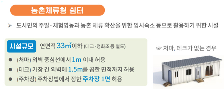 농촌 체류형 쉼터 조건 가격 허용 기준 알아보기