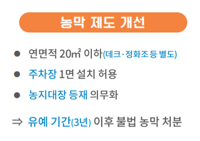 농식품부는 기존 농막을 농촌 체류형 쉼터로 전환할 수 있는 양성화 방안을 추진하고 있어요. 농막이 쉼터 설치 요건을 충족할 경우, 일정 기간 내에 소유자 신고를 통해 쉼터로 전환하는 것이 허용됩니다.