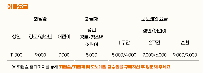 A: 모노레일은 화담숲 공식 홈페이지에서 예약할 수 있어요. 1번 승강장에서 출발하는 모노레일만 사전 예약이 가능하답니다.